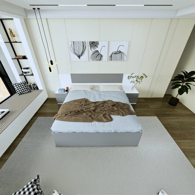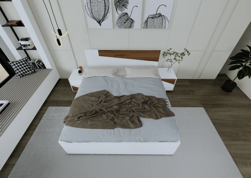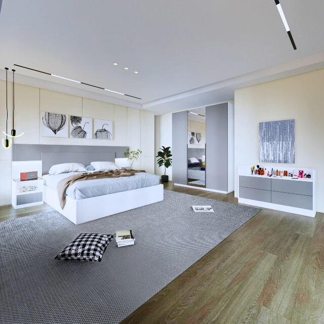 تأتي الغرفة بتكوين متكامل يوفر جميع احتياجاتك من تخزين وراحة، وتضيف لمسة رقي وجمال لأي مساحة نوم.
