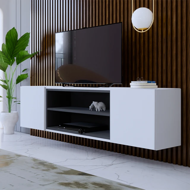 وحدة تلفزيون خشب MDF تركي بضلفتين تاتش ورف
