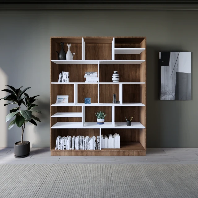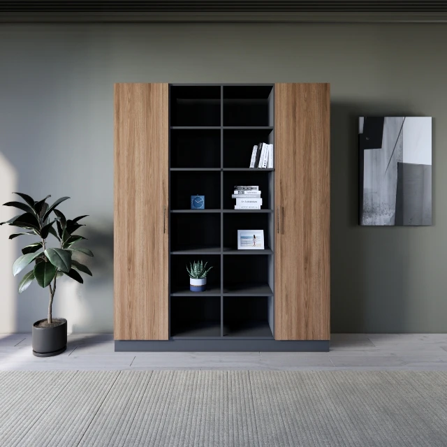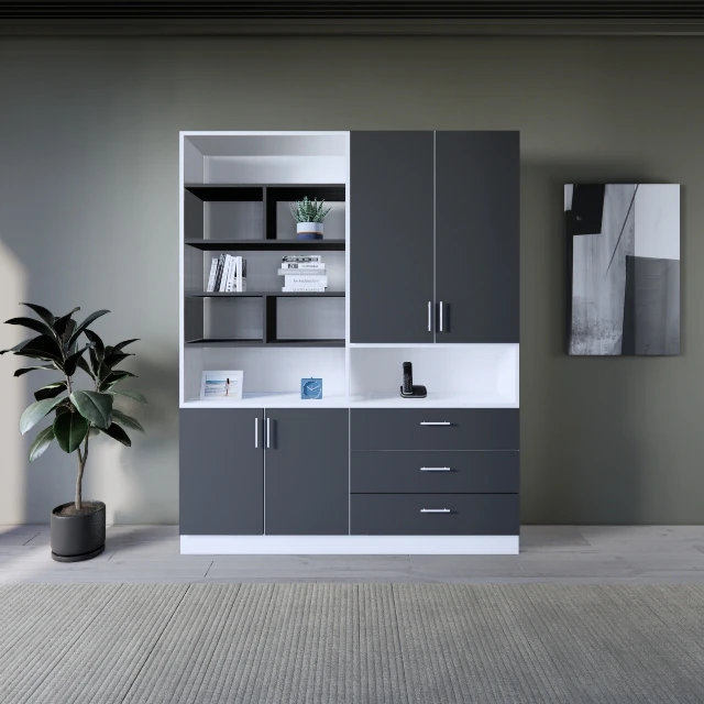 تتميز بتصميم عملي يجمع بين 4 ضلف ورفوف ديكور لتخزين الملفات والمستندات والأدوات المكتبية بشكل مرتب وأنيق.