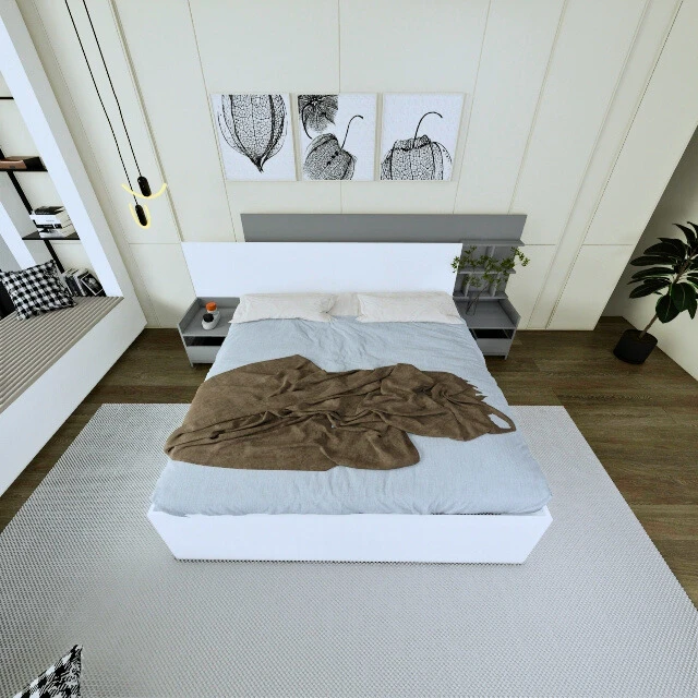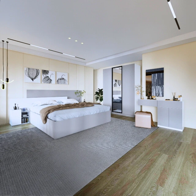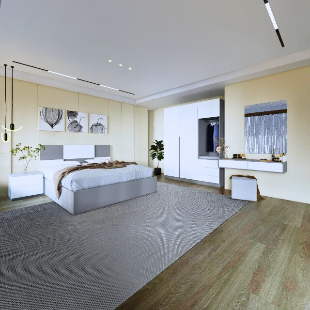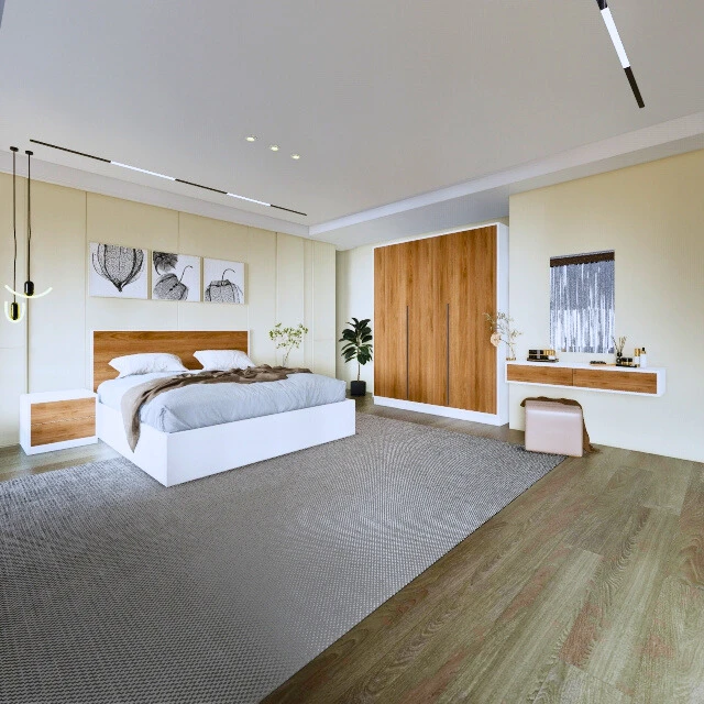 غرفة نوم خشب MDF تركي بتصميم عصري وميزات تخزين ذكية