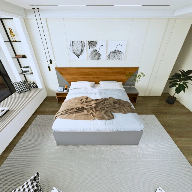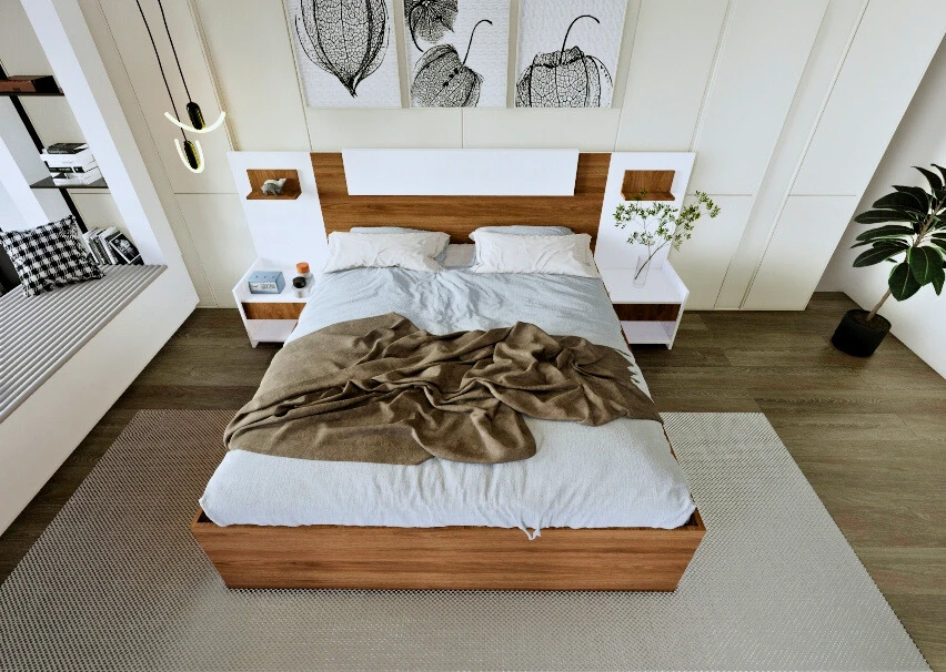 غرفة نوم خشبية بتصميم عصري وألوان أنيقة