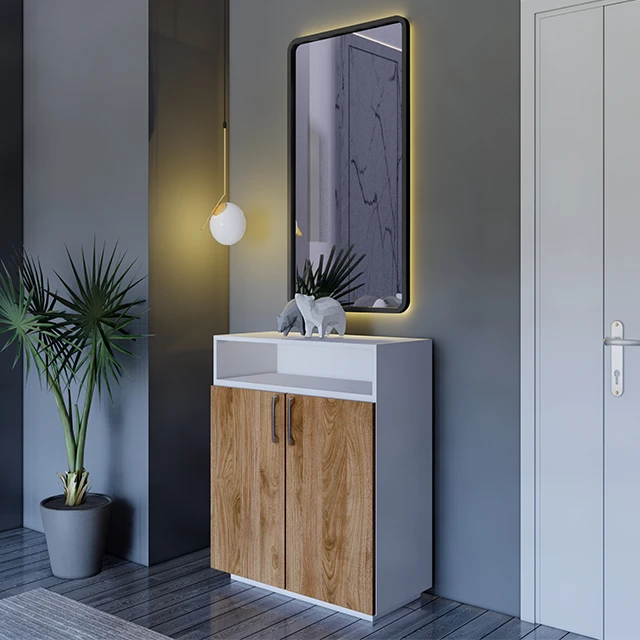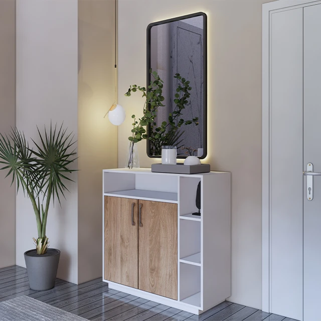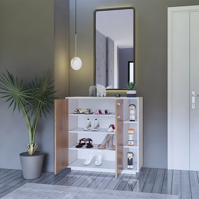 خزانة أحذية خشب MDF تركي بتصميم أنيق مع أرفف ديكور