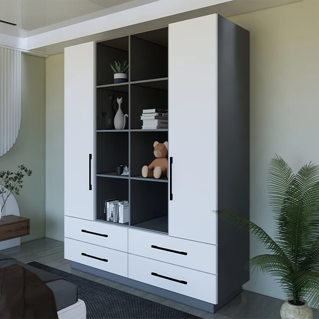 دولاب خشب MDF تركي بأربعة ضلف وأدراج واسعة بتصميم عصري