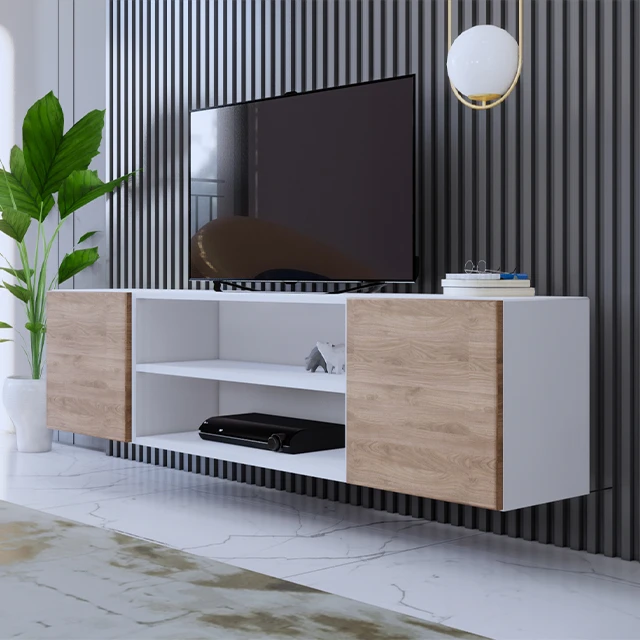 وحدة تلفزيون خشب MDF تركي بضلفتين تاتش ورف